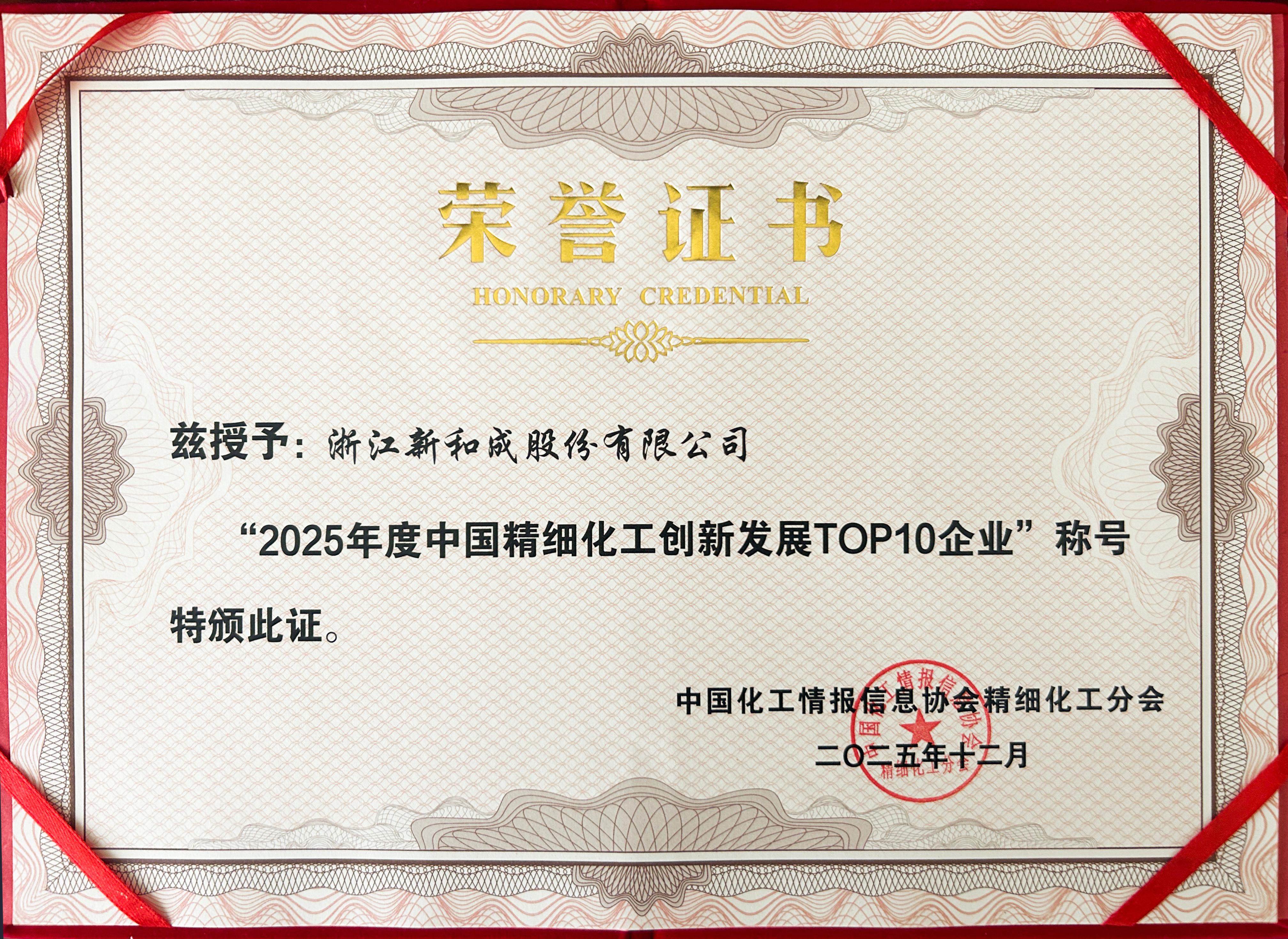 NHU claimed the top position in both the 2025 China Top 100 Fine Chemical Companies and the 2025 China Top 10 Fine Chemical Innovation and Development Companies. This double recognition affirms NHU’s overall industry leadership and highlights our strengths in management, innovation, and green development.